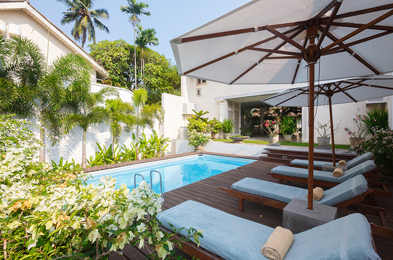 Besides the beautiful interiors, 20 Middle Street comes with irresistible outdoor areas centred around an eight-metre pool. The pool is surrounded by a wooden deck furnished with sun loungers and parasols, with enchanting gardens adding to the exotic ambiance.