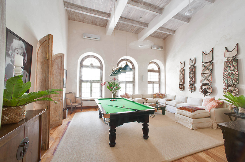 For some in-villa entertainment, 20 Middle Street offers a fabulous games room furnished with a billiard table and a generous L-shaped sofa positioned before a wall-mounted TV.