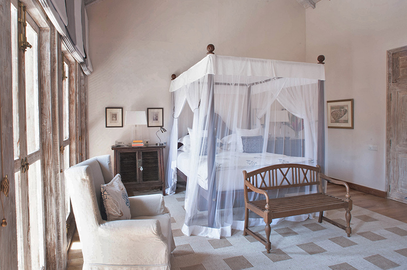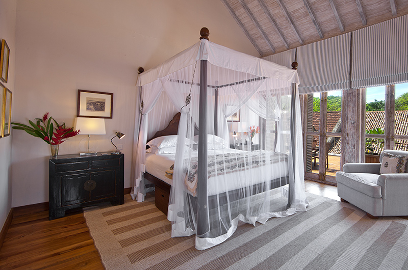 The fourth bedroom is known as the Garden Cottage. The bedroom features a queen-sized four-poster bed and an ensuite bathroom with a shower.