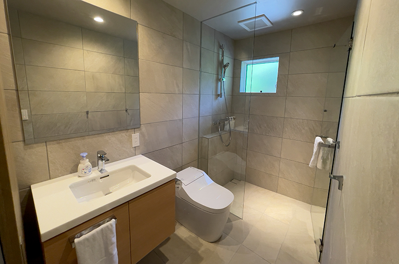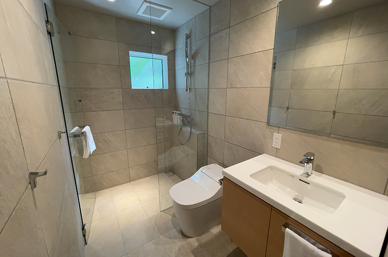 This room is located opposite to the first bedroom. Like its counterpart, this room also offers the choice between a king-sized bed or two singles. There’s a closet for storing your belongings and an ensuite bathroom for added convenience. The bathroom features a shower, vanity and toilet.