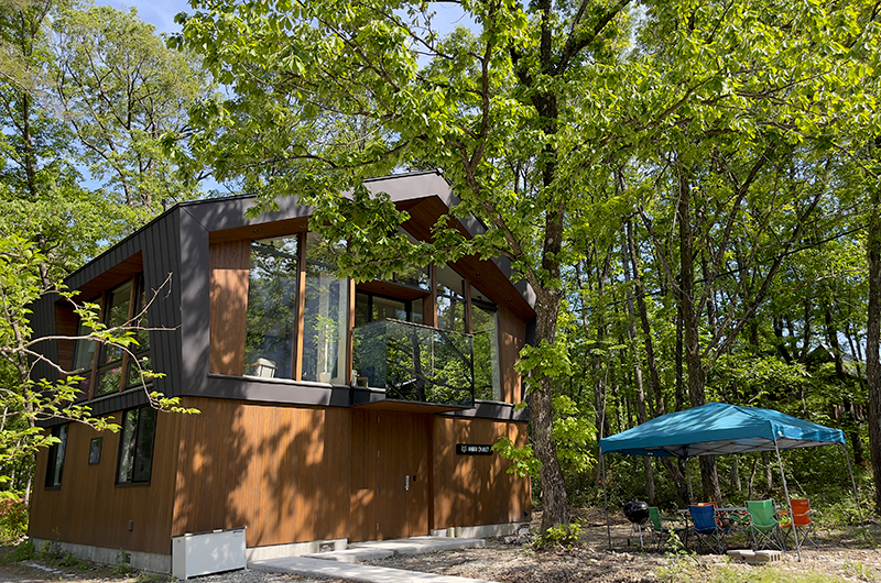 Ahiru Chalet features four bedrooms. The bedrooms are light and airy, and they offer a variety of bedding arrangements to accommodate different groups. There are three bedrooms on the ground floor: two with king beds (or two singles if you prefer) and one with two sets of bunk beds. Additionally, there is a smaller bunk room on the upper floor, conveniently located next to the living areas.