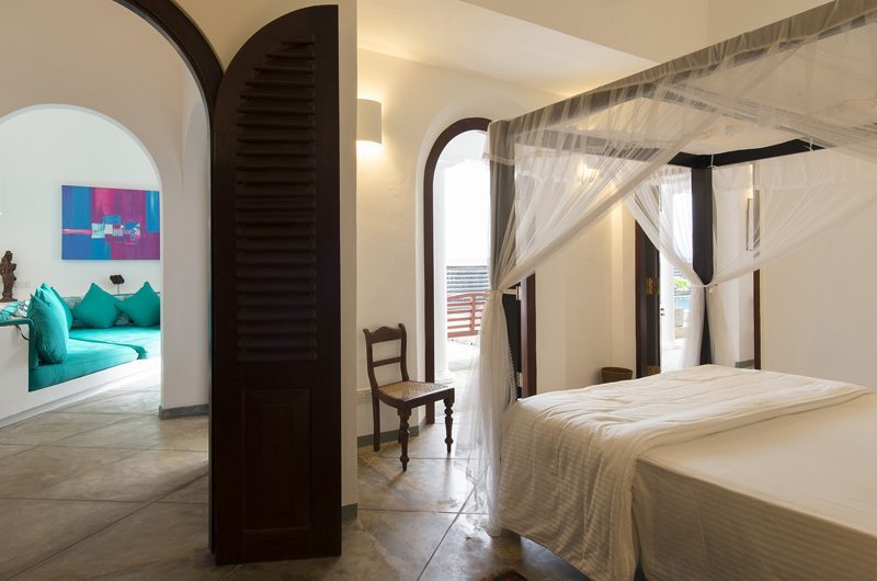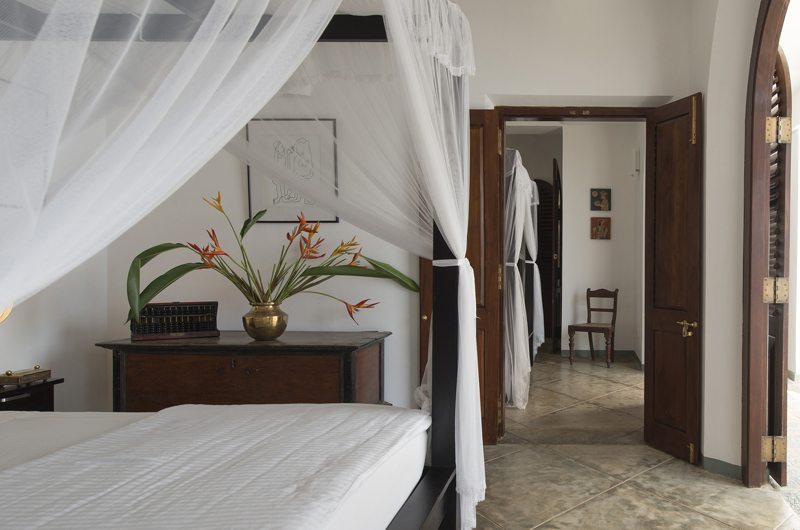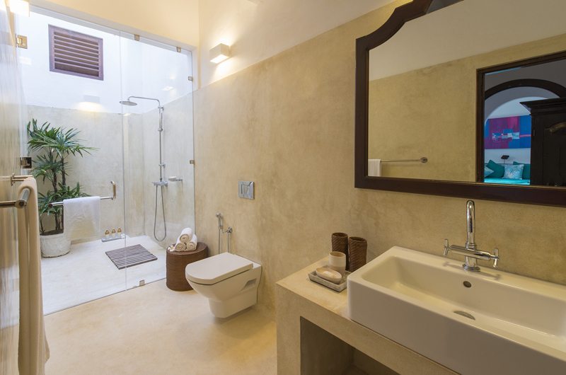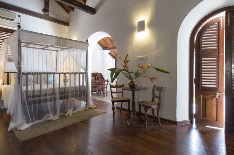 Ambassador’s House features one of the only swimming pools in Galle Fort. The 11-metre plunge pool is surrounded by lush gardens blooming with bougainvillea. The villa includes several outdoor lounging areas in the courtyard and a beautiful rooftop terrace for taking in the views.