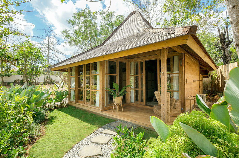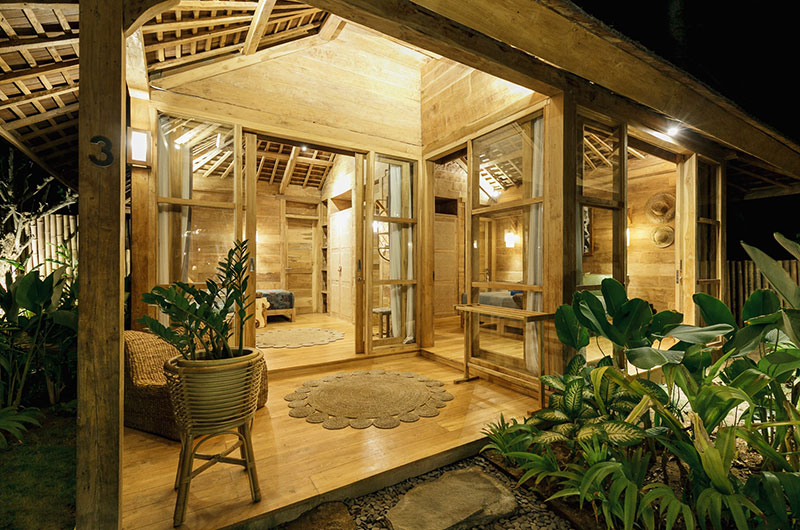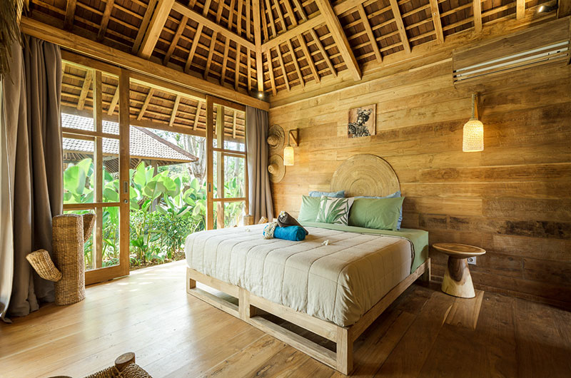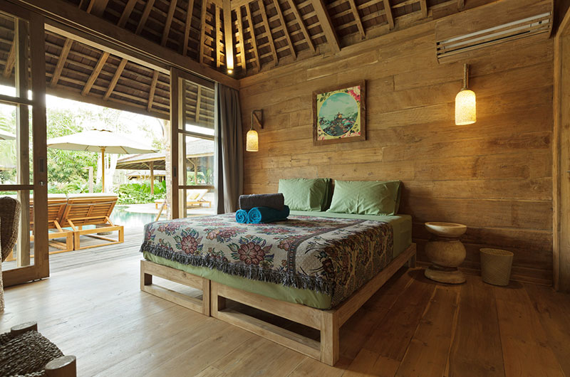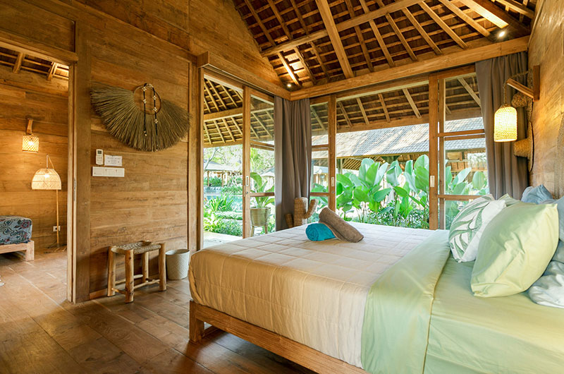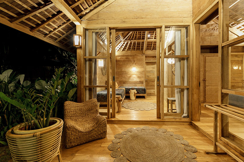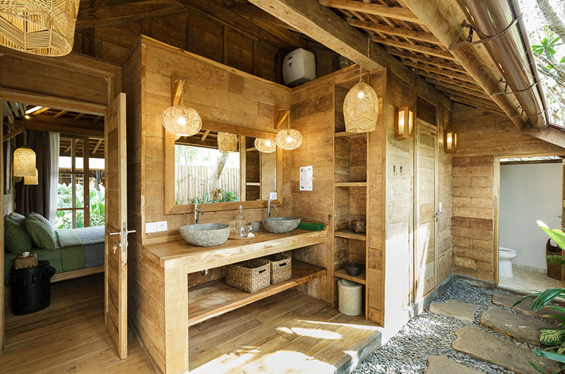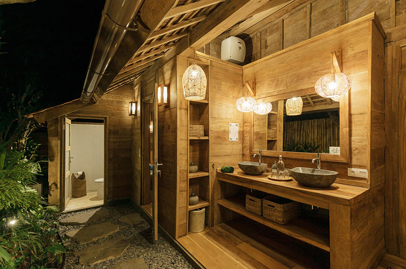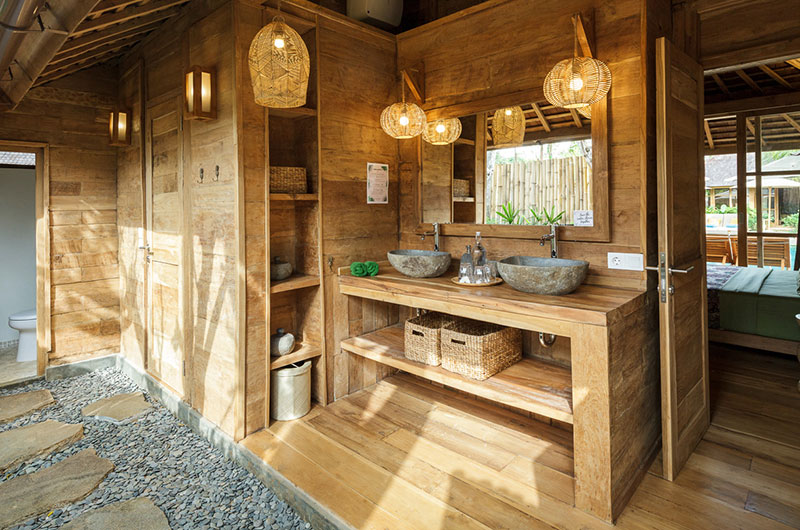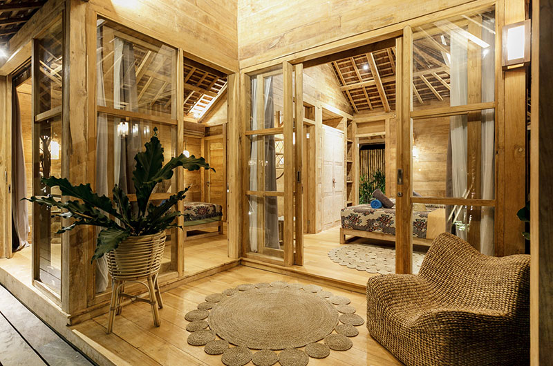 Bingin Retreat features 12 bedrooms. The bedrooms are housed in beautiful teak pavilions scattered across the lush gardens. The bedrooms are divided into pairs, with each pavilion housing two bedrooms and a bathroom that’s shared between them. The bedding arrangements are very flexible as each room features a king-sized bed which can also be converted into two singles if needed.