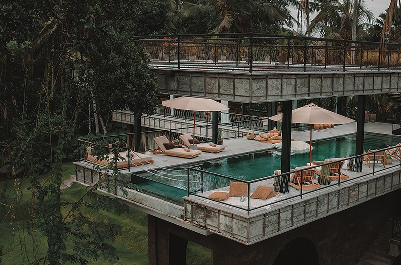Bond Bali’s gardens span some 700 square metres, creating an exclusive tropical wonderland for guests to explore. The gardens are surrounded by untamed jungle, with views looking over a neighbouring river. The villa’s infinity pool is built eight metres above ground, appearing to defy gravity.