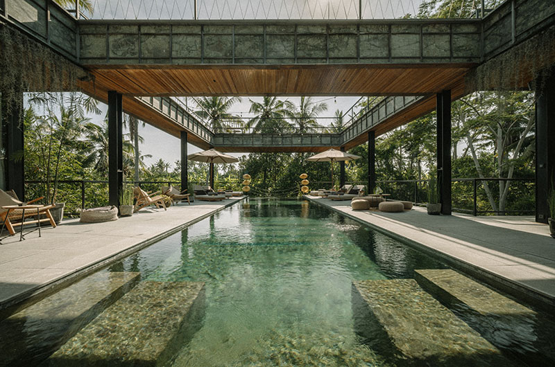 Bond Bali goes against the grain in the most stylish way imaginable. While most villas in Ubud are bohemian and rustic in their design, Bond Bali delivers a divine dose of sleek modern design and ambitious architecture. The minimalist modern lines and curated designer furniture are further elevated by the villa’s stunning tropical surroundings.