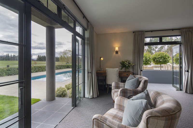 The villa offers ample opportunity for making the most of New Zealand’s great outdoors. The heated swimming pool is obviously a highlight and offers a blissfully peaceful setting looking out to the countryside. The villa also comes with extensive outdoor entertaining areas with a dining area, lounge furniture, barbecue and an outdoor fireplace.