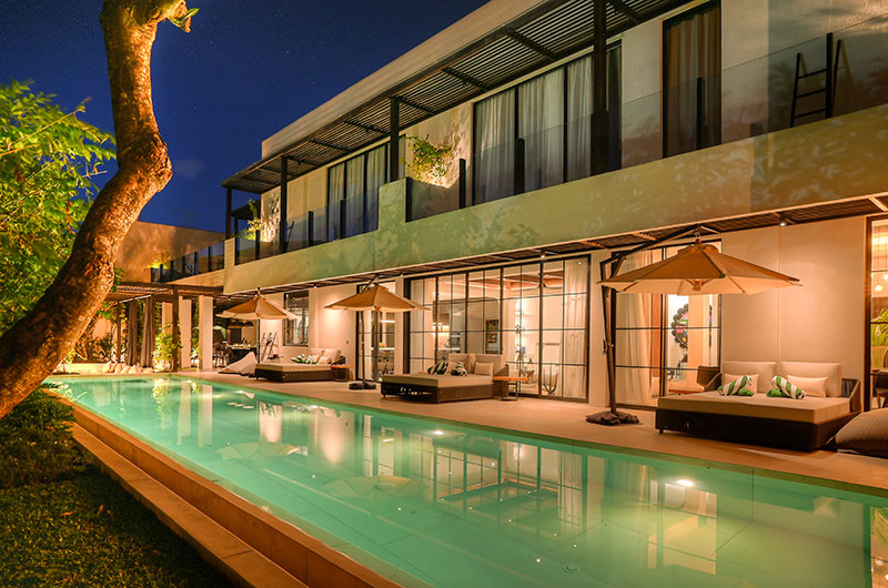 Carpediem is a six-bedroom villa that’s built over two floors. The ground floor houses the living and dining areas, media/games room, and two bedrooms. The upper floor houses four more bedrooms. The property spans 825 square metres and features a private 20-metre-long swimming pool.