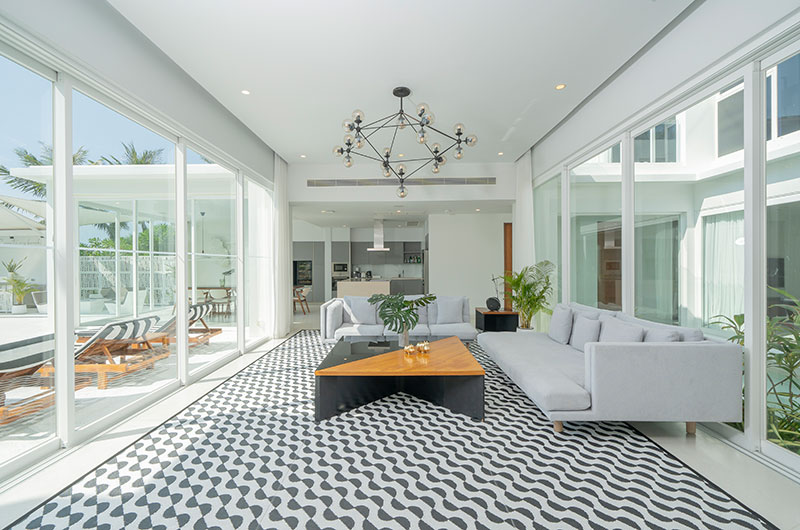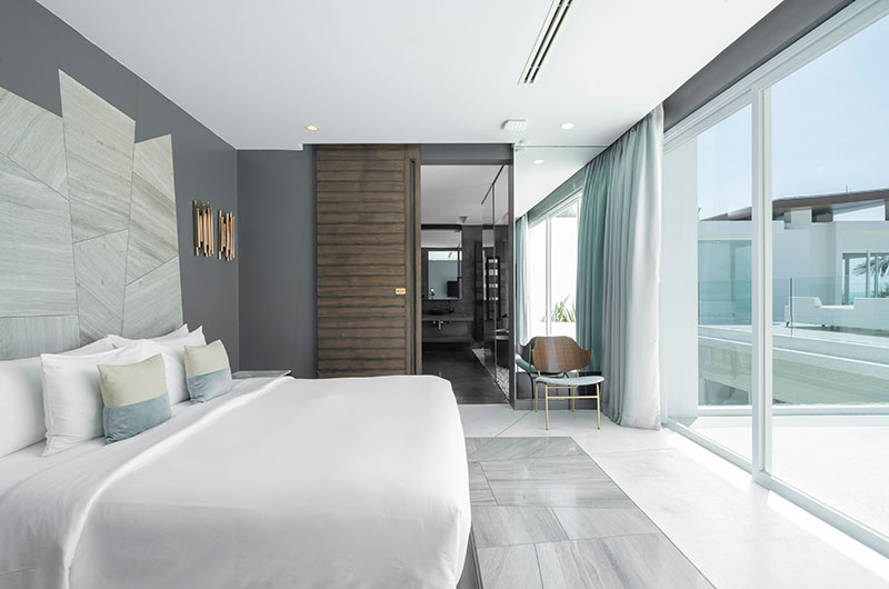 Each Coastal Escape Natai villa offers a stylish private retreat with wide open windows, clean lines and beautifully curated furnishings throughout. The villas are impeccably designed but never feel stuffy or pretentious but feature cool and funky touches like the bean bags in the glass encased rooftop lounge.