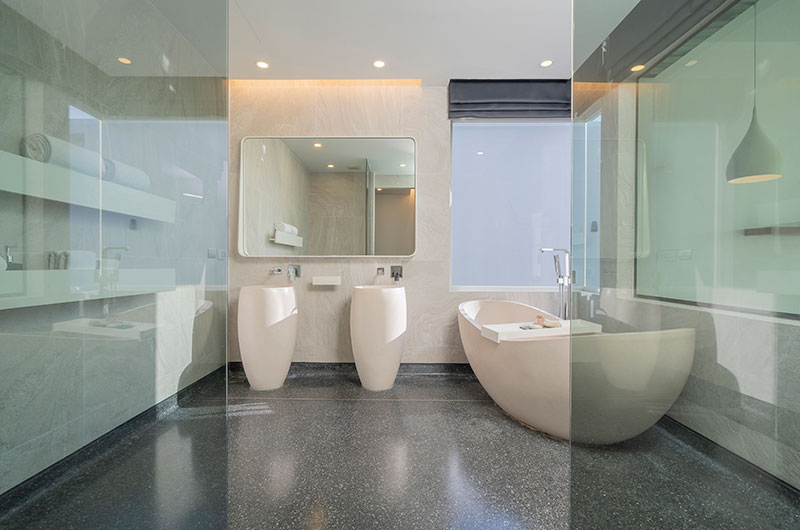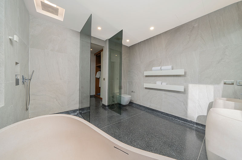 Each Coastal Escape Natai villa has five bedrooms. Four rooms have king-sized beds and one room has two single beds which can also be set up as a king if needed. There are two bedrooms on the ground floor and three bedrooms upstairs on the first floor.