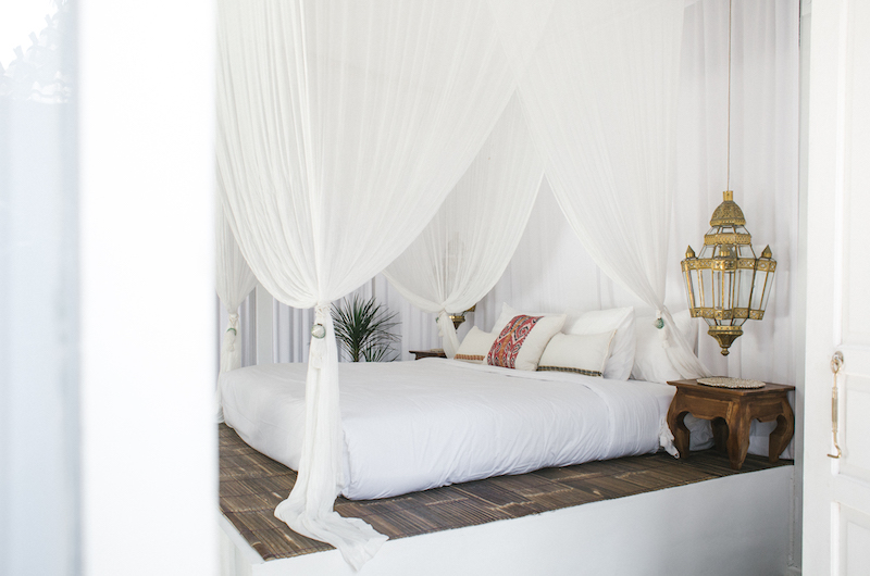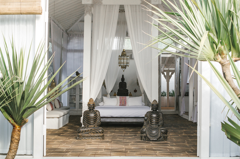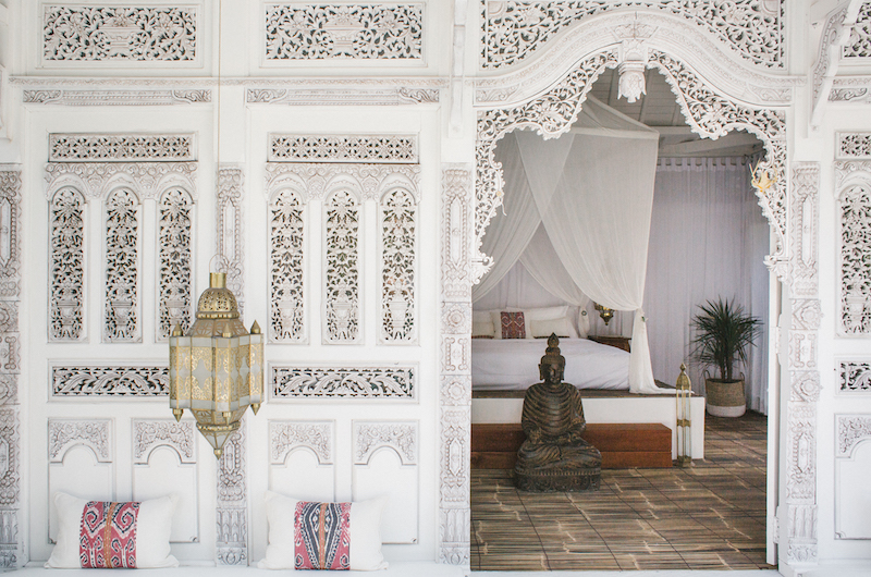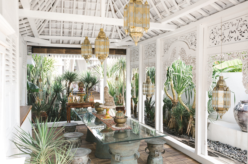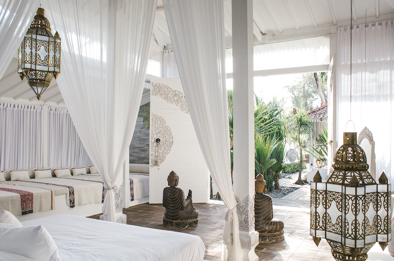 Experience a new level of modern day bohemia in Eco Gypsy House. Located in the relaxed seaside village of Seseh in Bali with a surf beach just 50 metres away, the three-bedroom Eco Gypsy House is a collection of beautifully styled white joglo pavilions scattered around a turquoise swimming pool, with ample cacti and tropical plants only adding to the boho chic ambiance. Each of the white pavilions is unique in its styling, with Moroccan lanterns, carved Balinese doorways and artful Buddhist shrines offering a uniquely beautiful study in barefoot island style.