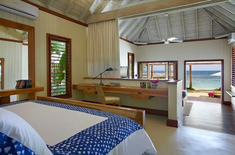 The one-bedroom lagoon hut is hugged by a private tropical garden. Called Spanish Elm, this is one of the first buildings of GoldenEye and boasts stunning vistas of the lagoon, where guests can enjoy a luxurious swim in absolute privacy. Never short on tropical charm, Spanish Elm attracted Johnny Depp to plant a namesake tree right by the villa.