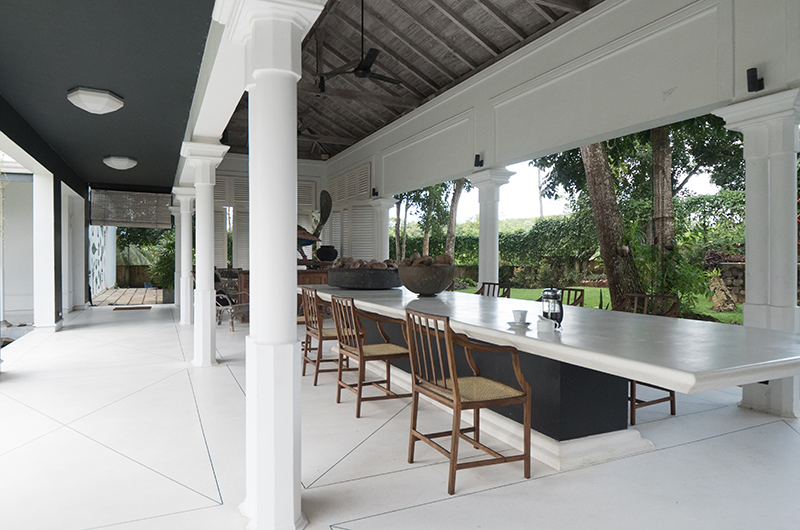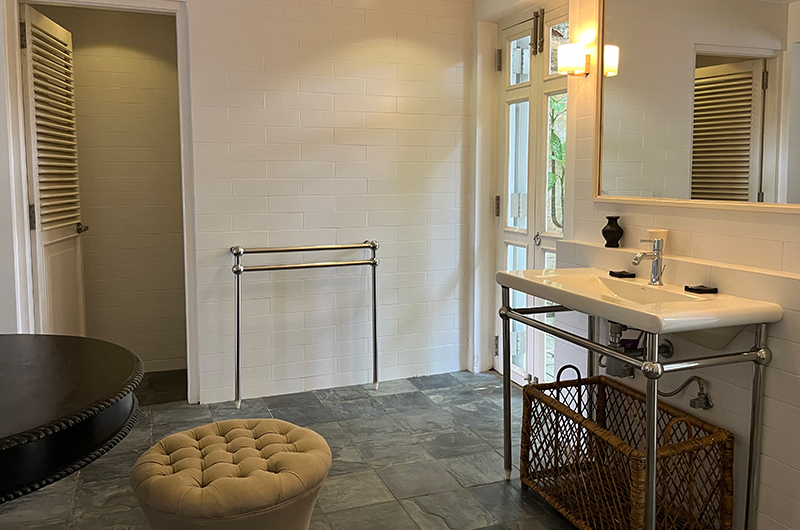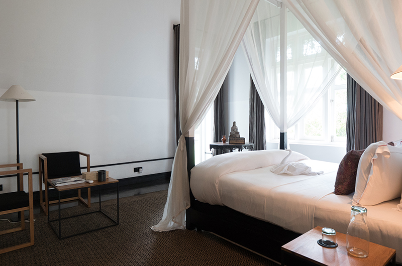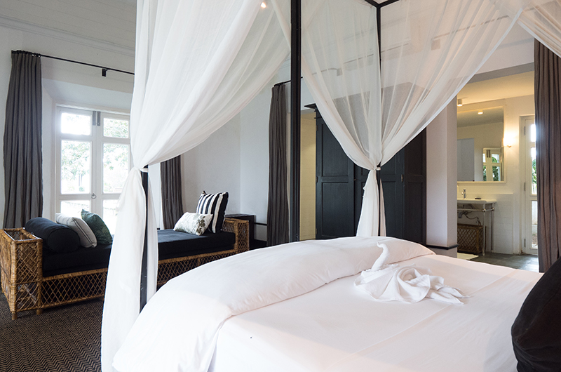 The villa’s colonial inspired architecture offers multiple quiet corners to relax in. Guests are welcomed to the estate in the entrance hall, a grand space with a 20-metre high ceiling and a first taste of the villa’s spectacular collection of art, antiques and curios. Just to the side of the entrance hall, the aptly named Room of Curiosities offers an inspiring setting for curling up with a good book.