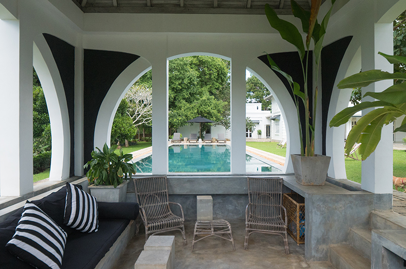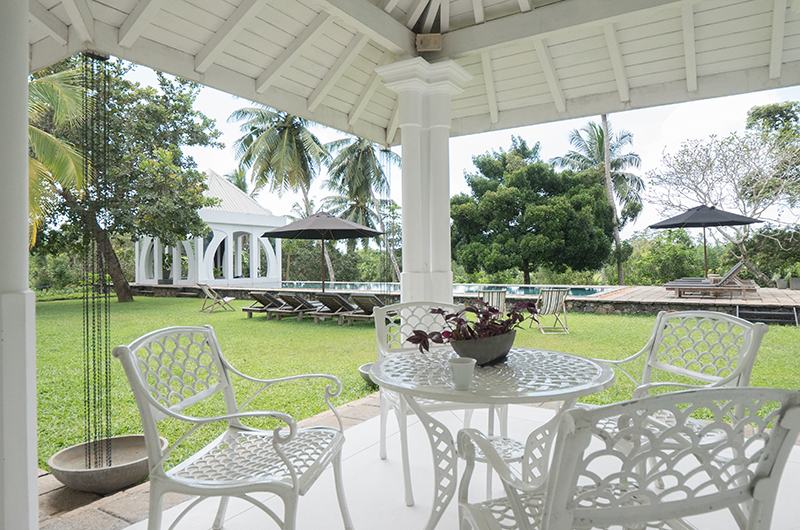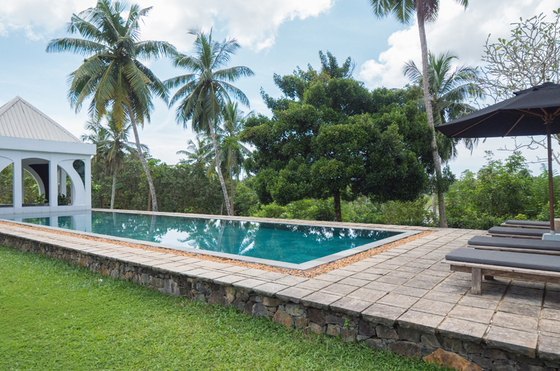 Halala Kanda is set amidst two acres of gardens which were once completely overtaken by the jungle. Once the shrubbery was cleared, the owners discovered neatly planted lines of coconut trees, cashew nuts, mangosteen and mango trees which have since been complemented by coffee and tea, pineapple and citrus groves, pepper and cinnamon vines along with a spice and vegetable garden. The gardens have been further elevated by the addition of a stunning 23-metre long salt water pool which looks over the surrounding paddies and jungle and out to the coastline. The poolside “Folly” is an elegant place to enjoy the shade – the perfect space for getting lost in conversation or even enjoying a spot of yoga.