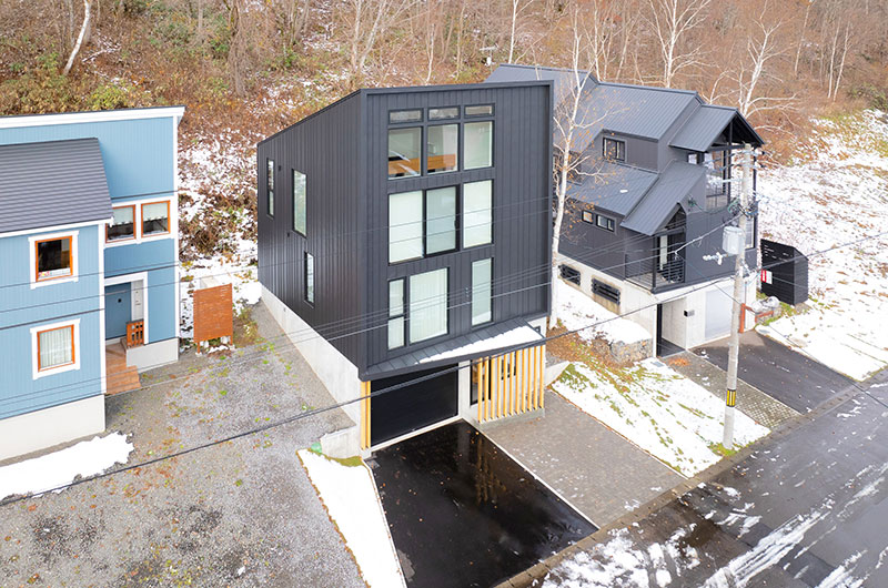 Hamiyuki is a three-bedroom chalet that’s built over three floors. The ground floor, which is also the entrance level, houses the garage, ski room, and laundry room. The middle floor houses the three bedrooms. One of them is ensuite and the other two share a bathroom between them. The top floor houses the living and dining room and a media room.