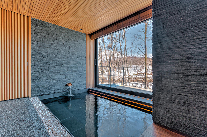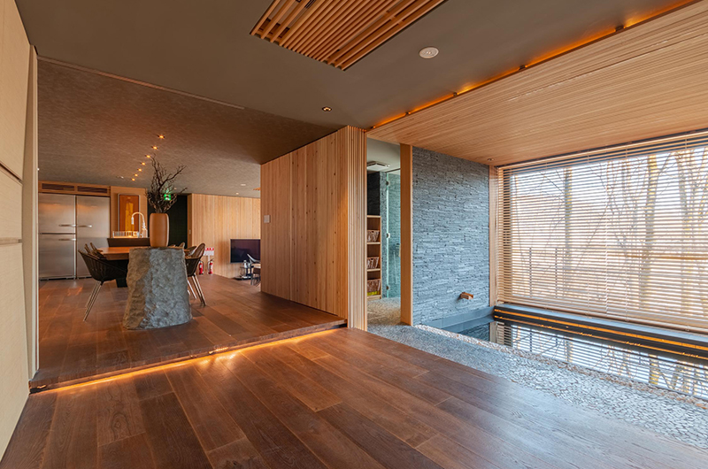 What a property! Unique design with captivating views. And the onsen bath in the living room is pretty damn cool!