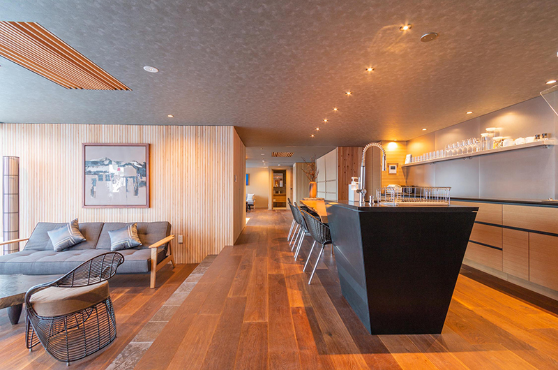 Hideaway on Escarpment is located on the outer edge of Hirafu Village. Located just above the tree line, the chalet offers fantastic views of Mount Yotei and the Hirafu Valley. Hideaway on Escarpment is located in an exclusive nook which could be called Hirafu’s Millionaire’s Mile, as the area is dotted with the most luxurious chalets in the area. The main hub of Hirafu, which offers a great selection of restaurants and of course, access to the ski lifts, is about five minutes away by car.