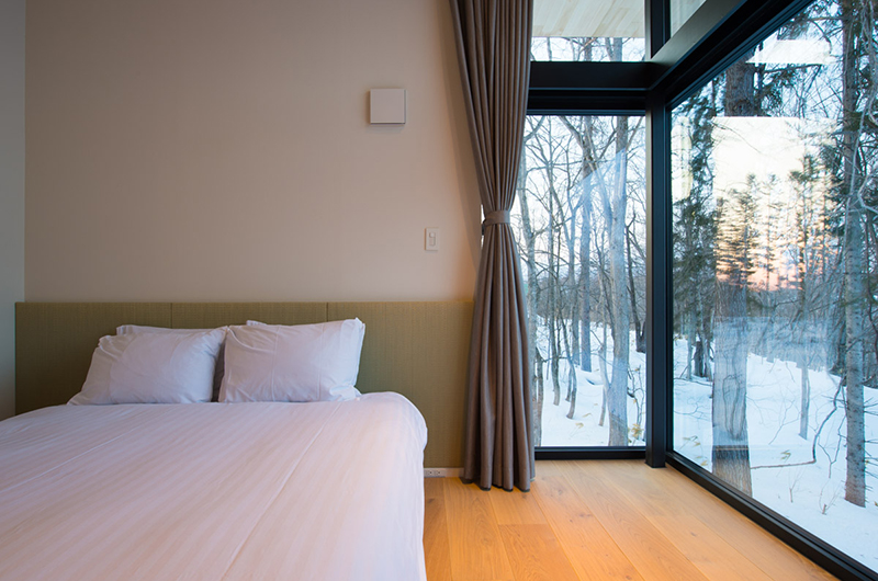Hiyoku oozes cool Japanese minimalistic charm with modern architecture featured throughout its two-storey design. Along one side of the upper floor are huge full-wall windows offering sweeping views of the majestic Mt Yotei whilst bay windows run along the mirroring side.