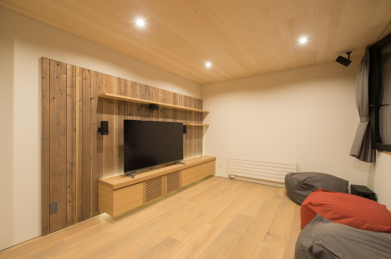 Hiyoku is a three-bedroom chalet built over two floors. The entry-level ground floor features a ski room, two bedrooms: one with twin futon beds and the other with two sets of bunk beds. A media room is also located on the ground floor of which can be converted into a fourth bedroom if required. The second-floor houses one king-sized bedroom, the living and dining spaces as well as a designer kitchen.