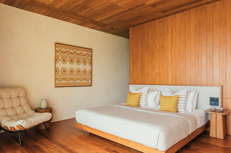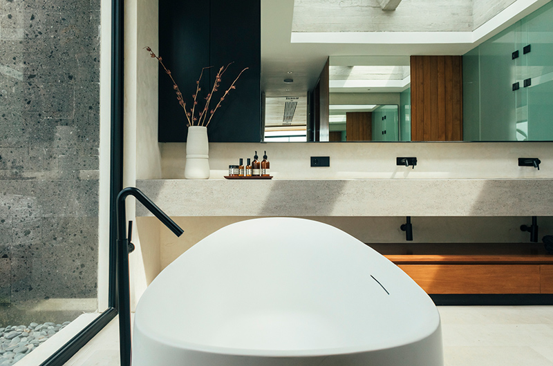 Designed by GFAB Architects, House of Herring lives up to its cutting-edge pedigree. As you enter the villa, a large pivot door reveals a beautiful atrium with a walkway looking down to the living areas below. This gives you a first taste of the incredible ocean views which are consistent throughout the property, including from all four bedrooms. The villa’s design beautifully fuses modern aesthetics with natural materials, mixing teakwood with bold concrete and local palimanan floors. The end result is nothing short of sensational.