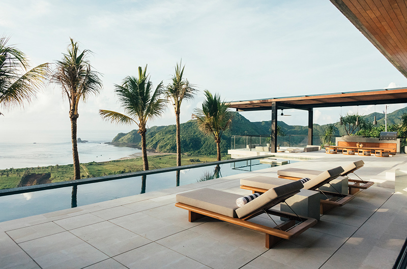 Surrounded by stunning natural landscape and lush tropical greenery, much of your time at the villa will likely be spent outdoors. A jaw-dropping L-shaped infinity pool offers all the more reason to slap on the sun screen and embrace the great outdoors. Hugging the modern contours of the villa, the pool also includes a shaded section and a shallow splash area for younger swimmers. The pool is surrounded by extensive deck areas offering the perfect setting for sunset gazing over the Indian Ocean. Gather around the alfresco dining table and enjoy an impromptu barbecue or settle for a round of cocktails at the sunken lounge. Either way, you’ll be treated to front row views of Lombok’s breathtaking landscape.