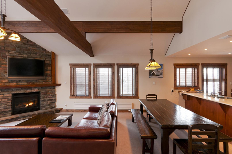 Ishi Couloir consists of three self-contained units sharing the same alpine chic decor and snow covered views offered through ample windows. Each unit has a secure ski storage and the living areas are beautifully done up with a stone fireplace and exposed beams.