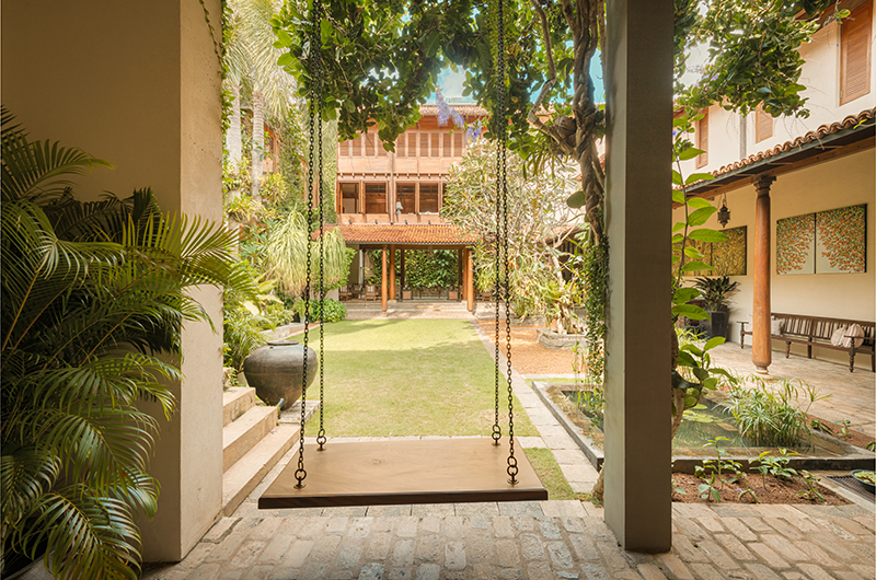 Life at Ishq Colombo flows effortlessly between indoor and outdoor spaces. The attractive gardens work as a second living room and also add a lush twist to the interiors, with generous windows providing dreamy views throughout the villa. The property centres on a courtyard which blooms with mature trees and colourful flowers, with a serene pond adding a moment of calm. Shaded verandas offer an indulgent break in the shade, while a playful swing provides some fun photo ops. The living areas open to a private swimming pool which offers welcome respite from the midday sun. The property is crowned with an idyllic rooftop terrace framed by greenery – your own private sanctuary in the heart of Colombo.