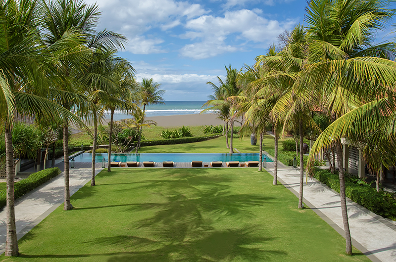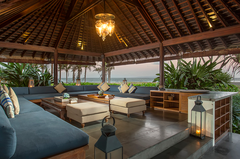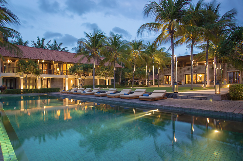 Jeeva Saba Estate is set on an immense plot of beachfront land, looking out to the Indian Ocean. The vast lawns sprawl around a vast 25-metre swimming pool, with a row of sun beds perfectly positioned for working on your tan while gazing out to sea. Close to the beach, a charming Joglo pavilion offers an intimate setting for alfresco dining by the sea.