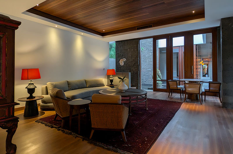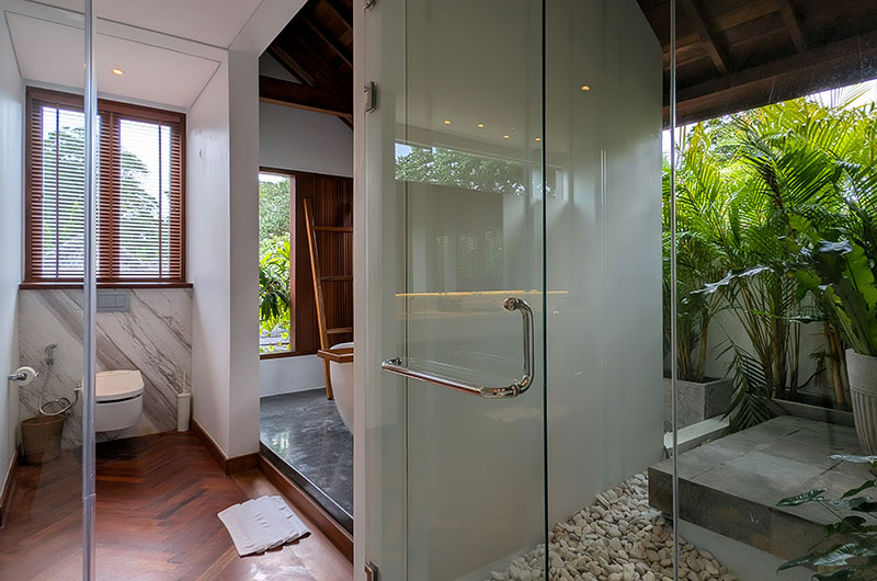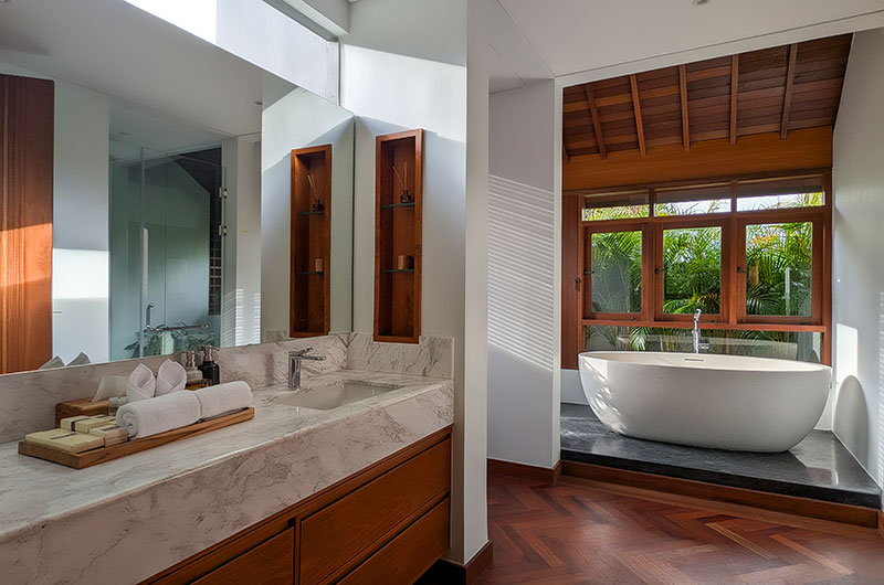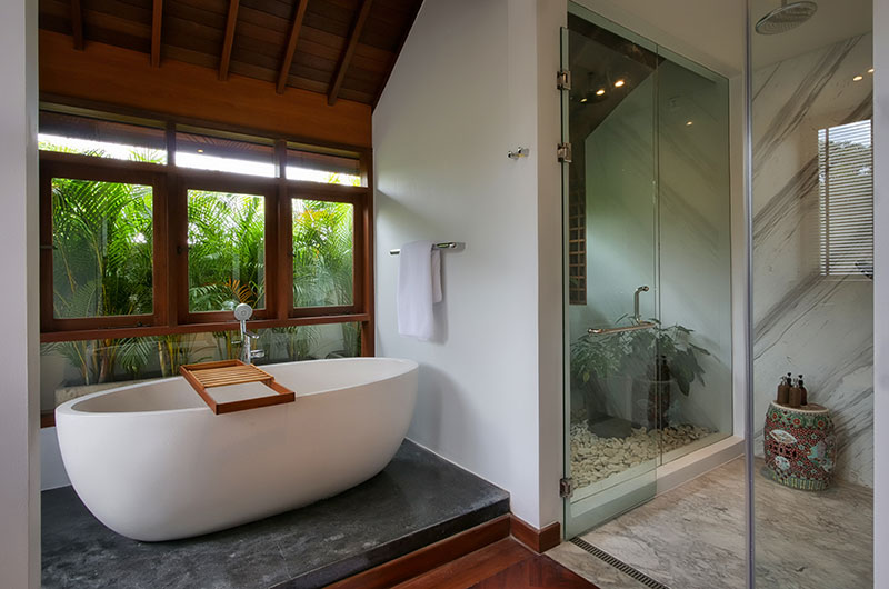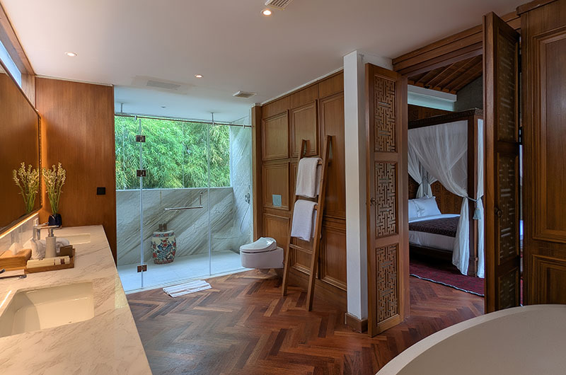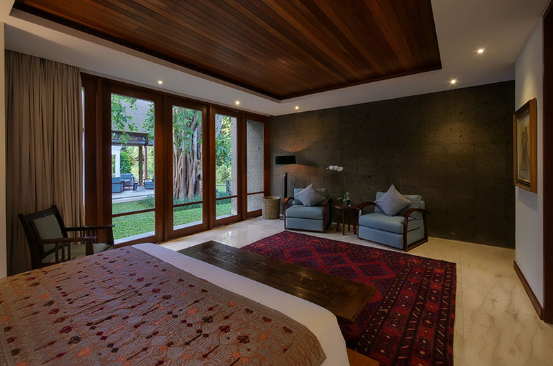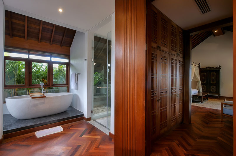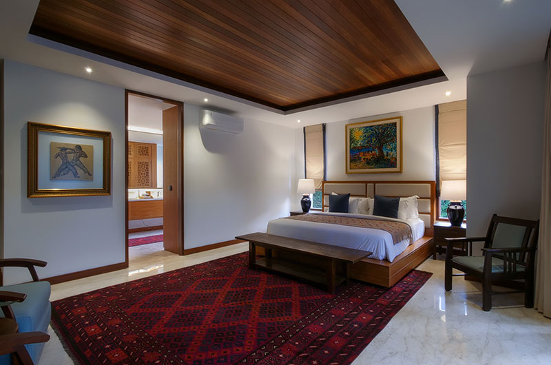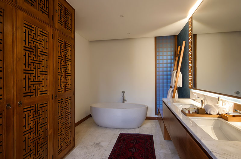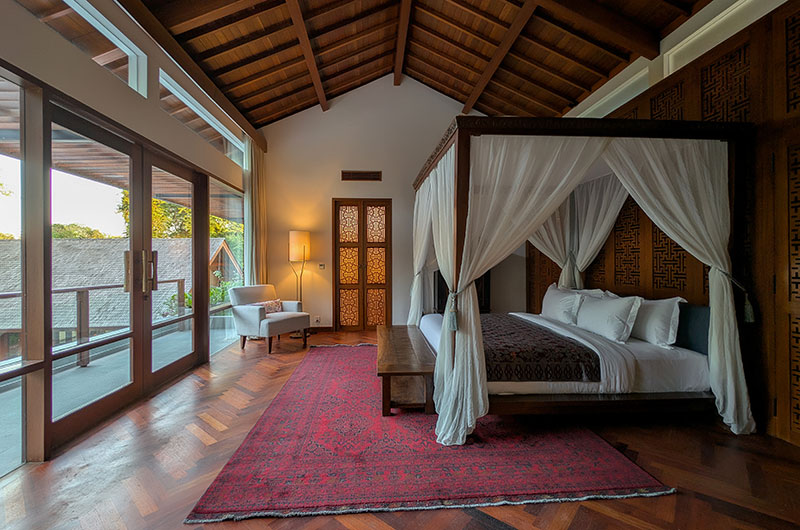 Jeeva Tirta features four bedrooms. The bedrooms exude classic Balinese elegance: think canopy beds, ornate carpets, and beautiful timber pieces. All rooms feature beautiful ensuite bathrooms. If you need extra space, the library room can be converted into a fifth bedroom.