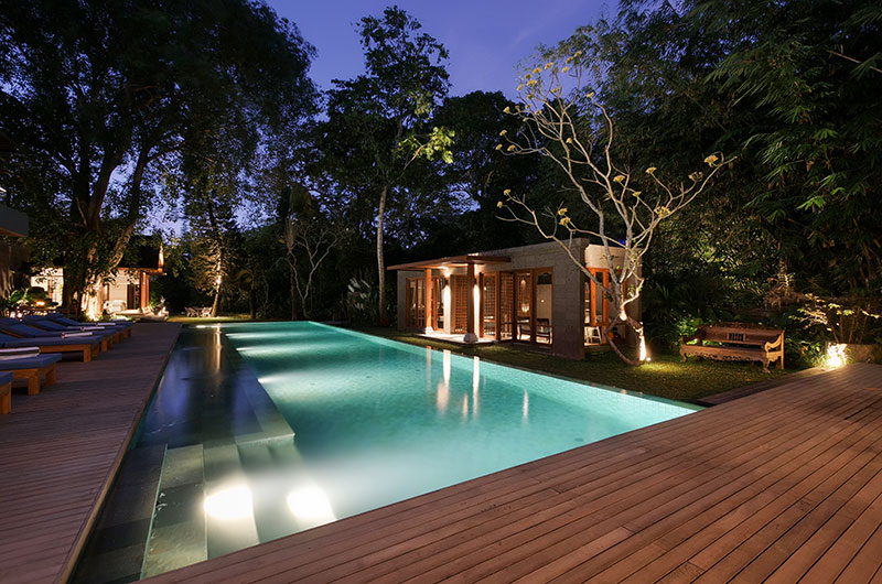 The pool and garden feel like a serene sanctuary hidden from the rest of the world. Surrounded by lush greenery, the pool is 25 metres long and looks stunning at any time of day, whether glistening under the midday sun or illuminated by garden lights after sunset. An impressive row of sunbeds lines the pool, allowing you to return home with a glowing Bali tan.