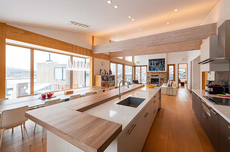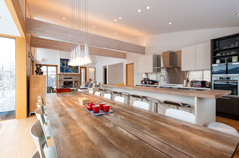 Kazane is located in Lower Hirafu Village in Niseko, Japan. This is a fabulous locale for enjoying everything Hirafu has to offer (from the slopes to the izakayas and the after-ski fun) without being right in the thick of it. In this strategic setting, Kazane provides ample room for the kids to run and play in the snow as well as offering those epic views of Mount Yotei. There are a few great restaurants tucked into the lower village, including Rin and Koharuya. What’s more, the free shuttle bus stop is practically across the street from the chalet. This means you can access the lifts with ease and sample all the amazing restaurants and pubs awaiting in the heart of the village.