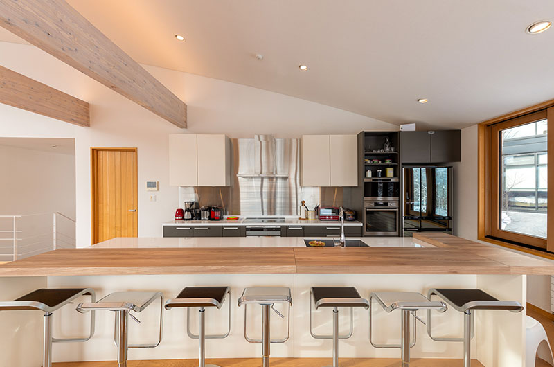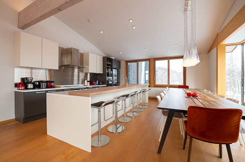 Kazane is a hard chalet to resist. This incredibly spacious chalet offers the best of both worlds with its location alone: close to all the action in Hirafu Village yet away from the noise with nothing to obstruct the views. Spanning three floors, the chalet has been designed with meticulous care: the materials are all top of the line and a lot of the furniture and fixtures have been custom made.