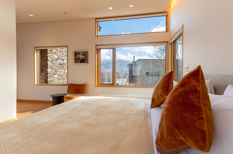 There are many showstopping elements to this chalet. The cedar wood bath is perfect for soaking up those sore skier’s muscles, while the tatami room casts a spell with its serene ambiance. However, it’s the top floor living areas that really add the wow factor with floor to ceiling windows offering awe-inspiring views of Mount Yotei. Kazane features six bedrooms and offers easy access to everything Niseko has to offer, whether you’re looking to hit the slopes, sample all the best restaurants, or simply park yourself by the fireside and take in the mountainside magic.