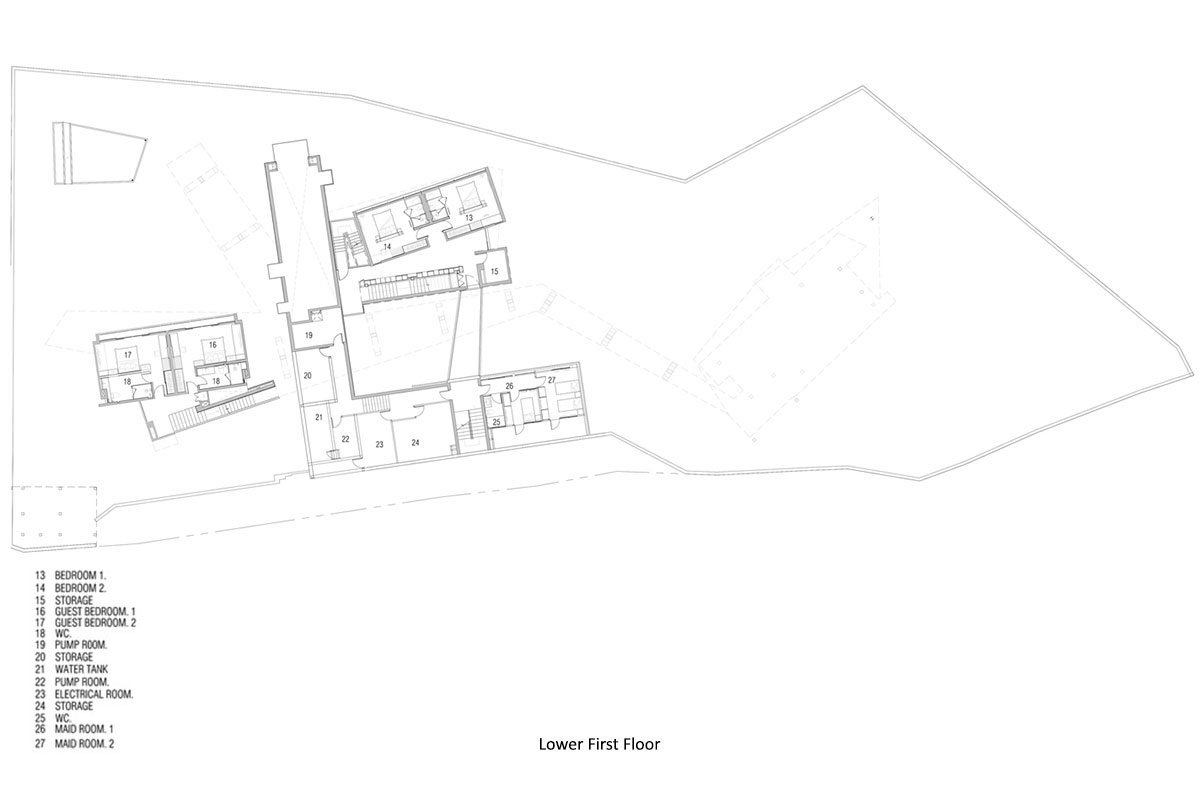 Kelapa House is a four-bedroom villa that’s built over four levels. The top floor is the entrance level and houses the living and dining areas, kitchen, and pool. The ground floor houses four bedrooms and the villa’s gym. The lower ground floor houses the media room, while the floor below features the spa room.