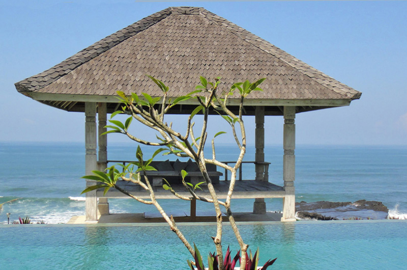Villa Breeze is an example of Balinese design at its best. The octagonal, two storey villa has a beautiful open plan living and dining room with amazing stacked slate, stones and mosaic tiles walls and floors. A private garden and pool extend to the cliff edge is a breathtaking sight especially at night when the pool is lit by fiber optic lights. The upstairs master bedroom has a king sized bed with a desk and sofa as well as a private balcony while the downstairs second bedroom has a queen sized bed and single bed.