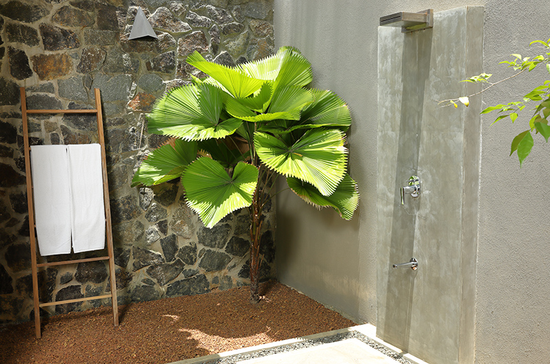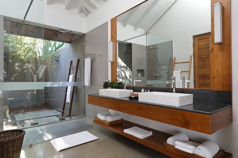 It is difficult to imagine a more heavenly setting. The villa’s 20-metre-long pool is stunning in its own right, not to mention being spacious enough for clocking some serious laps in. But it is the setting that really takes this stunner of a pool to the next level. The azure blue pool is surrounded by a rolling stretch of lawn dotted with sky high palm trees that play in the tropical breeze. After a few easy steps, this idyllic greenery gives way to a soft expanse of sand that’s hugged by the salty waves of the Indian Ocean. That’s right – you literally have a paradise beach waiting right in your own backyard. Naturally, the villa was designed for making the most of its one in a million setting with several picturesque nooks scattered thought the garden. You can enjoy an alfresco massage in the shade of those picture perfect palm trees (the waves rolling in provide the ultimate soothing soundtrack), enjoy breakfast outside by the pool or simply laze about on the deck and take in every last ounce of this rare piece of paradise.