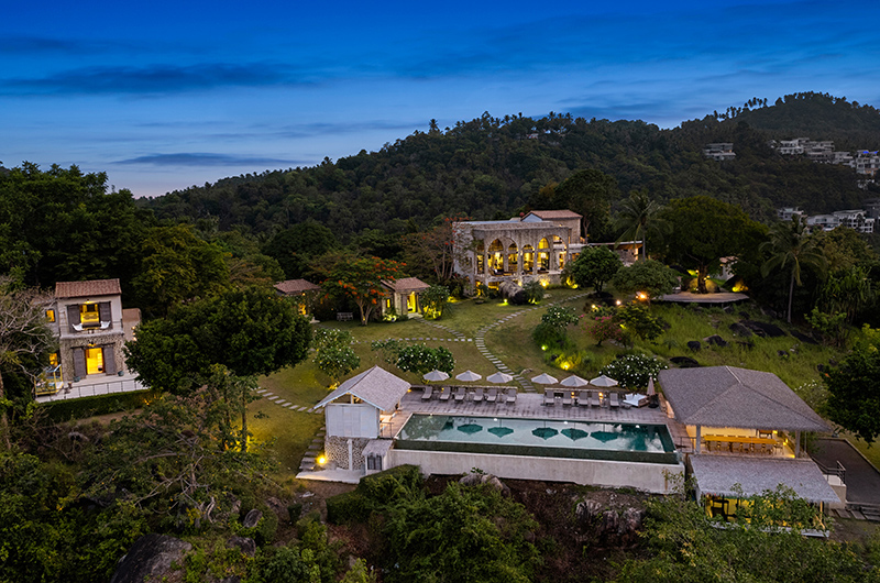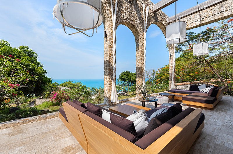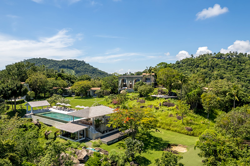 A big property situated on a hill overlooking the ocean. There is a main villa as well as a few surrounding smaller villas. You get there through a steep winding road. There is security at the front gates. Rustic in decor. Perfect for a wedding.