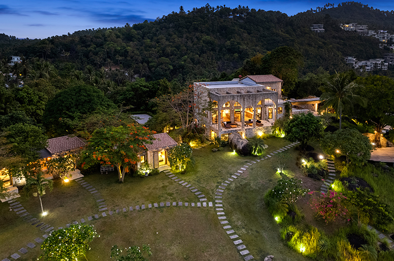 High on the hillside of Koh Samui, overlooking Chaweng Bay, sophisticated Koh Koon villa is a palatial retreat that blends rustic Mediterranean styles with relaxing Asian influences. Set over sprawling gardens leading down to a beautiful poolside terrace with ample entertaining spaces, Koh Koon was designed for celebrating the finer things in life. The expansive villa features seven bedrooms, plus two children’s bedrooms which can sleep up to eight kids, so the setting is ideal for extended family holidays.