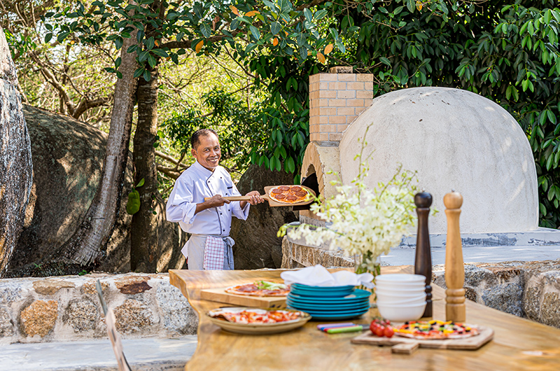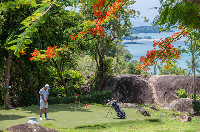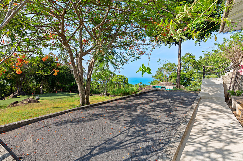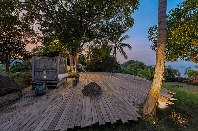 Koh Koon’s crowning glory is the infinity pool located at the edge of the property and offering sweeping views of the ocean. The poolside terrace works as a fabulous outdoor lounge and comes fully furnished with sun loungers and parasols, lounge seating positioned in the shade and a generous dining area flanked by an open-air bar. Koh Koon is set amidst vast gardens and offers plenty of room to run and play – there’s even an event platform for hosting ceremonies. Oh, and there’s a private putting green!