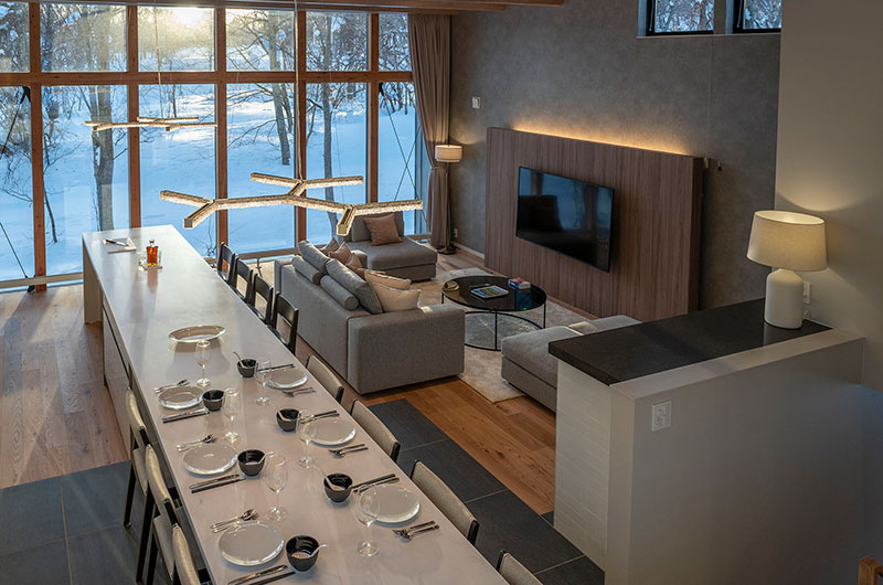 Fantastic chalet for those with kids as there is a bunk room next door to the master bedroom. Also works for groups of friends who don’t mind sleeping in bunks. Lovely views looking out to the forest with a comfortable living room with high ceilings. Great location just outside the heart of Hirafu. You could walk if fit however we hired a car to get around town easily.