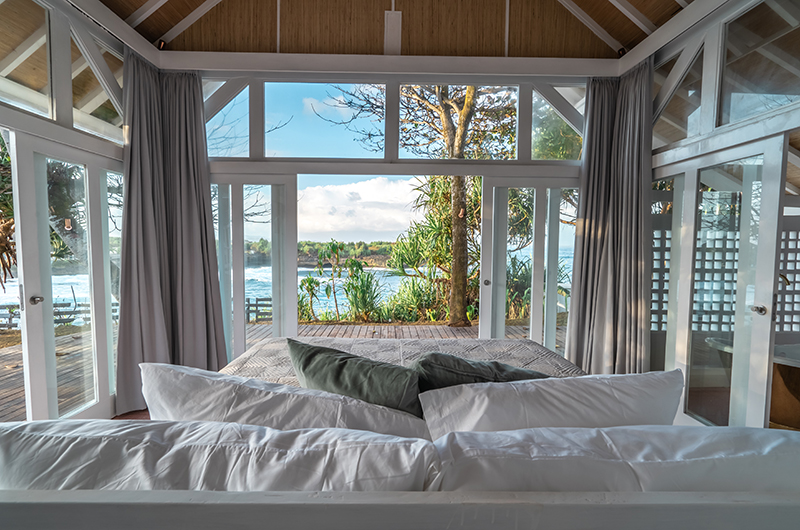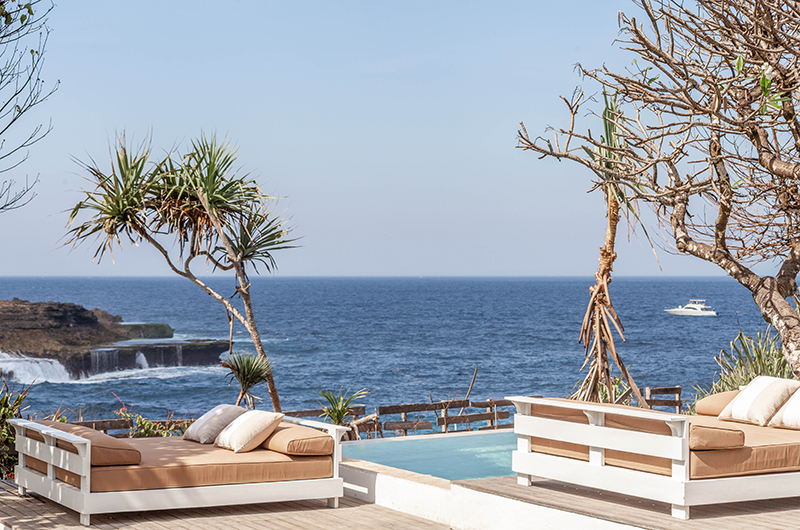 Mandala The Bay is located on the petite tropical island of Nusa Lembongan, a 30-some minute boat drive off the coast of Bali. Nusa Lembongan is a relaxed island where the “no news, no shoes” lifestyle reigns supreme. The villa is built on the picturesque rocks over Sandy Bay and offers stunning views of the ocean. The highly rated Sandy Bay Beach Club is mere minutes away. Nusa Lembongan is a small island so you’re never too far from anything. To make logistics a breeze, most (if not all) restaurants offer a complimentary pick up and drop off service.