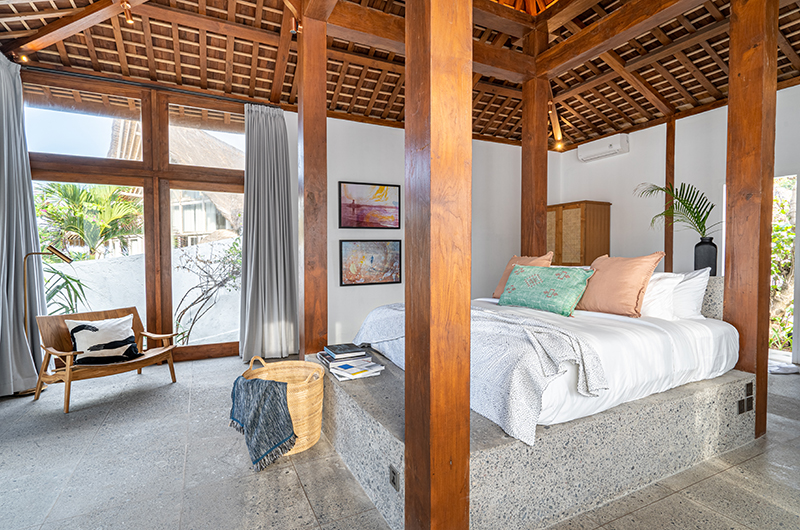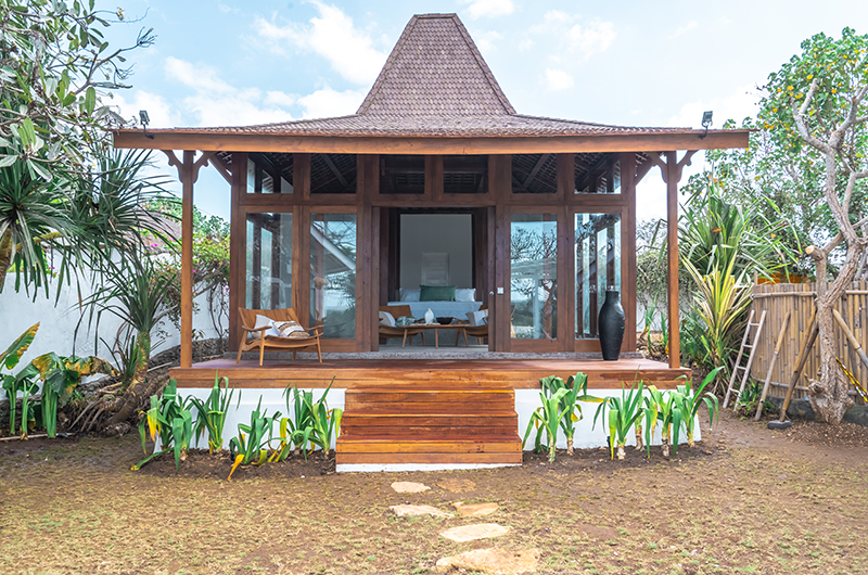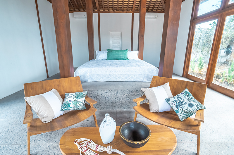 The first bedroom is housed in a standalone joglo pavilion, offering added sense of privacy for the lucky guests occupying this room. The room centres around a king-sized bed flanked by a relaxed seating area. An ensuite bathrooms completes the setup.