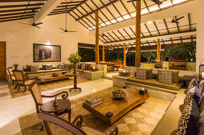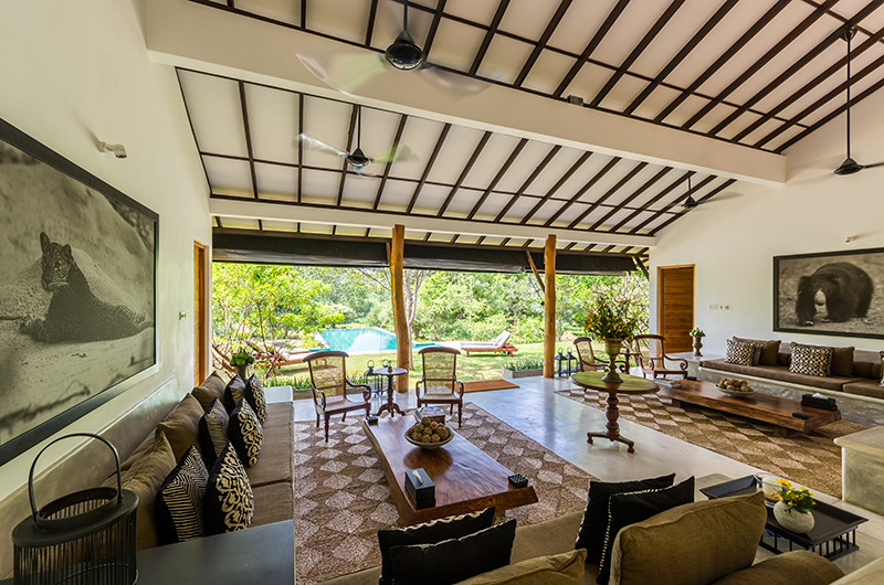 Mayur Lodge is a two-bedroom villa that’s built over a single floor. The villa features an open-sided living and dining room flanked by a bedroom on either side. The villa overlooks a 11 x 4 metre swimming pool.
