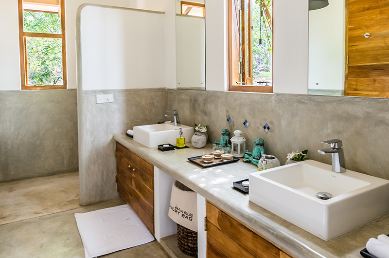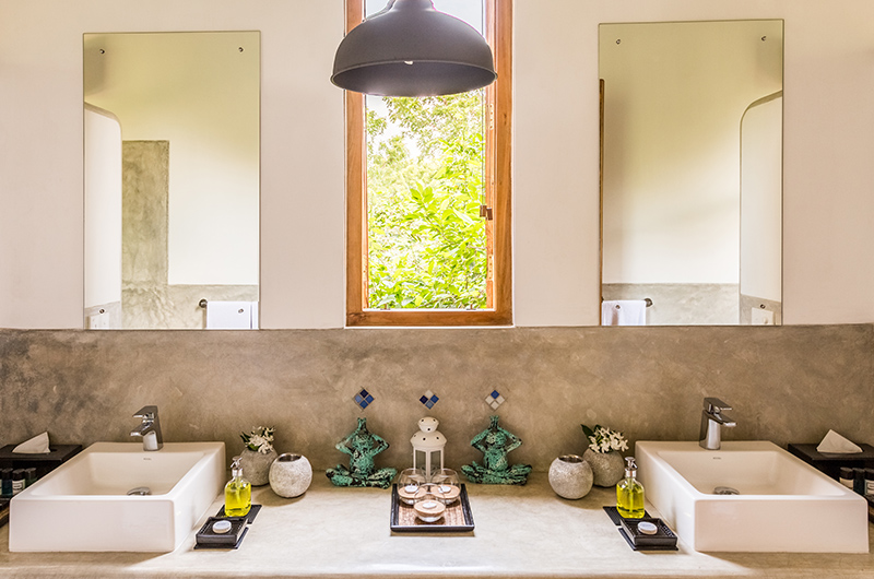 The living room is the heart of the villa, with an open-plan layout connecting fluidly to the poolside garden. This breezy space offers blissful respite from the tropical weather, with ample sofas and armchairs offering more than enough seating for the whole group. The room is decorated with curated textiles and artwork giving the room an elegant safari feel.