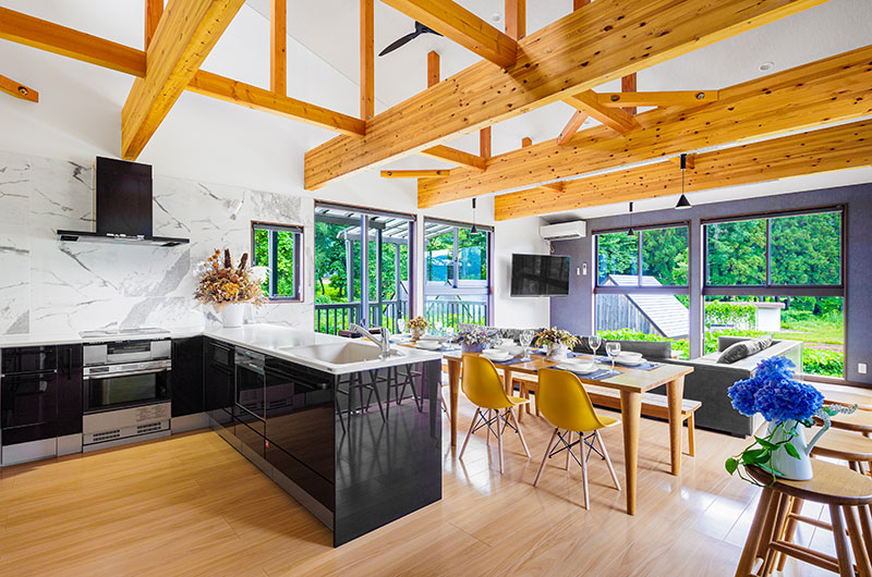 Mizuho Chalets have 3 units of 3 bedroom chalets and 3 units of 4 bedroom chalets and open-plan living and dining rooms.