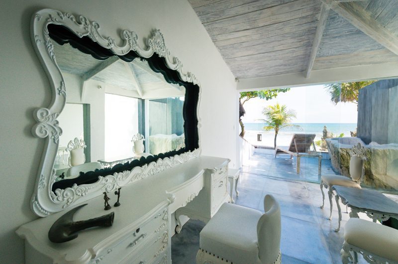 Morabito Art Villa is an amazing beachfront villa with 14 bedrooms, private beach and treasures in every room. The gorgeous white villa is a juxtaposition of contemporary art and antiques set in a prime location in the trendy neighbourhood of Canggu, Bali. The famous owner Pascal Morabito is a talented French designer and is known for his eclectic creations in many fields: jewellery, perfume, champagne, leather goods and so much more. Thanks to the villa’s artful design, gorgeous location and ample space for entertaining, Morabito Art Villa is the ideal venue for hosting weddings and celebrations in Bali.