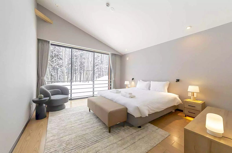 Mori Casa pairs stunningly serene surroundings with an amazing level of comfort. Through its full wall windows, the chalet looks out to pristine forest, allowing guests to really appreciate this stunning part of the world. The rooms are light, airy, and luxuriously spacious. There are thoughtful features throughout that’ll really elevate your stay, including those decadent Japanese baths and the heated boot racks by the door.