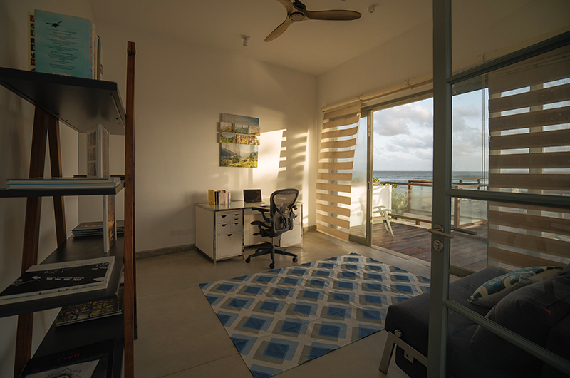 When you need to rewind between swims and excursions, you can hide out in the villa’s cosy library room. Housed on the ground floor, this room has well stocked bookshelves, comfy seats and a flatscreen TV. As the cherry on top, this room also benefits from the villa’s signature ocean views. If you need to catch up on some work or clear out your inbox, there is also a study room located on the upper floor.