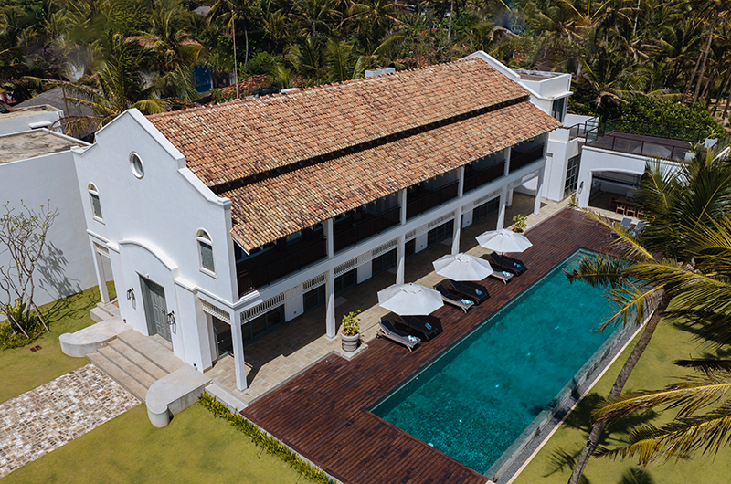 Myla Beach Villa is located in Rathgama on the southwest coast of Sri Lanka. The villa is located beachfront with direct access to a wide and quiet beach which stretches out as far as the eye can see. The historic Galle Fort, which dates back to the 16th century, is only a 15-minute drive away. With its cobblestone streets, historic buildings and beautiful lighthouse, Galle is one of the most famous landmarks in Sri Lanka. The famous Virgin White Tea Plantation is also less than an hour away, as is the beautiful Unawatuna Beach.