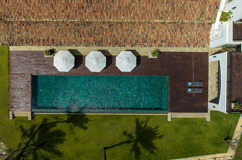 Neat green lawns, dreamy palm trees, a glistening blue pool and direct beach access – this beachfront beauty has it all. The villa’s private pool runs nearly the full width of the villa, offering ample opportunity for lazy laps while admiring the ocean views. The pool is surrounded by a sleek deck dotted with sun beds, also poised for taking in the views. The pool area is bookended by a covered dining pavilion which offers an idyllic setting for dining alfresco while the ocean breeze plays in your hair. Manicured lawns dotted with palm trees give way to a sandy beach that seems to go on forever, with the salty waves of the Indian Ocean lapping in at your feet.