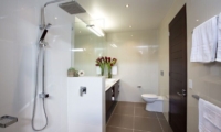 Spacious enough for 8 adults the downstairs living has impeccable finishes with a full size kitchen, open plan living and dining along with a separate media room. With 94 sqm of undercover outdoor area perched upon a 9m x 4m with kids ledge private pool, sun-loungers for all guests and BBQ facilities. Featuring a pristine water feature our villas are less than 100 metre walk to the beach or Naisoso River. Villas have Sky TV in both the lounge and media room, double lock up garage, large laundry with outdoor drying area as well as a guest toilet downstairs.
